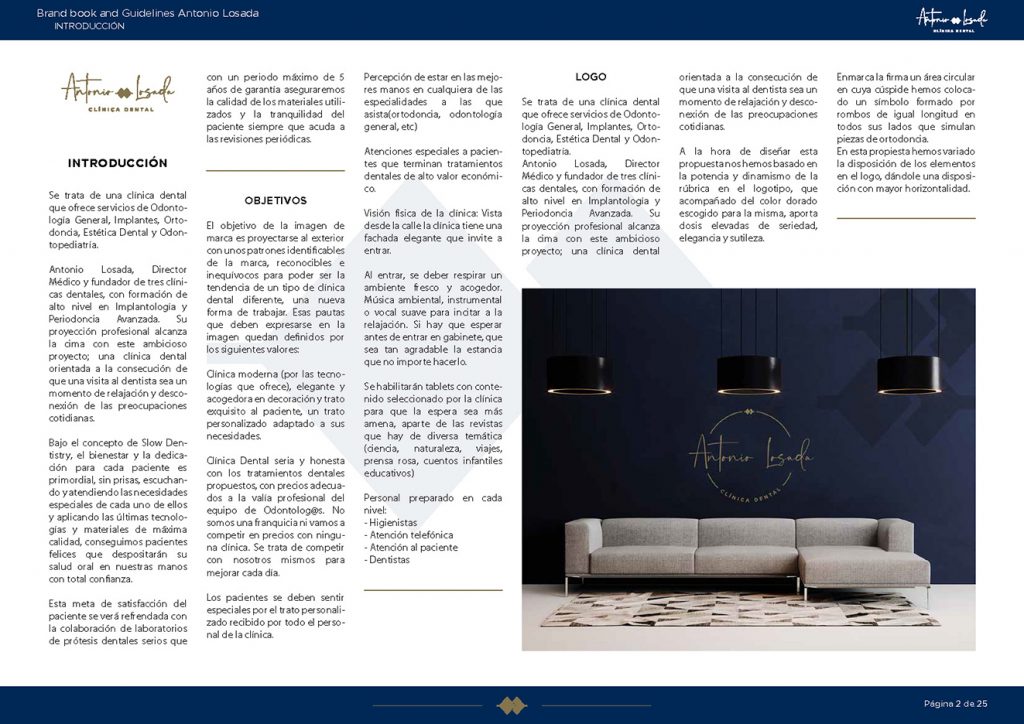 Proyecto de interiorismo y imágenes de promoción del proyecto. Además fueron contratadas las directrices de todo el diseño de la marca de la clínica dental Antonio Losada. Realizando el Manual de Identidad Corporativa del mismo y su aplicación en muchos formatos publicitarios.