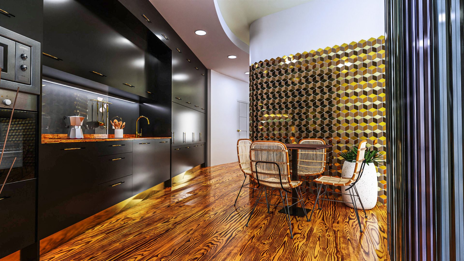Diseño e infografía de cocina para empresa de mobiliario de cocinas.